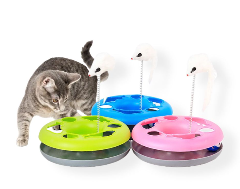 Đồ chơi mèo bóng 1 tầng hình tròn gắn chuột.