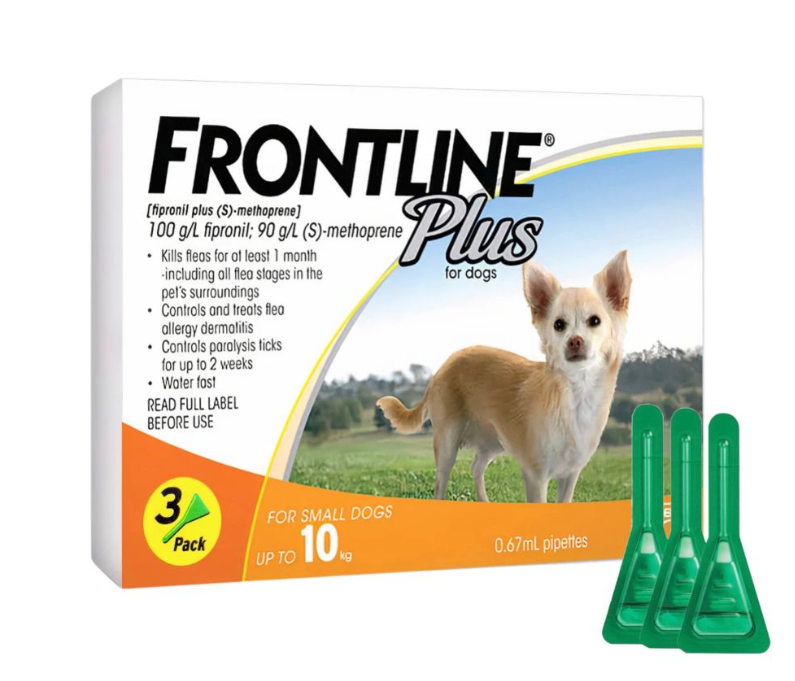 Nhỏ gáy ngừa ve rận cho chó <10kg Frontline Plus. Dành cho các giống chó lớn và trung bình. Đặc biệt an toàn, có thể sử dụng cho chó mang thai và nuôi con bú.
