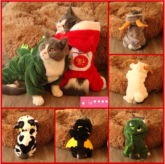 Quần áo nỉ bông cho chó mèo giữ ấm kèm mũ và túi đựng khóa kéo cao cấp chính hãng